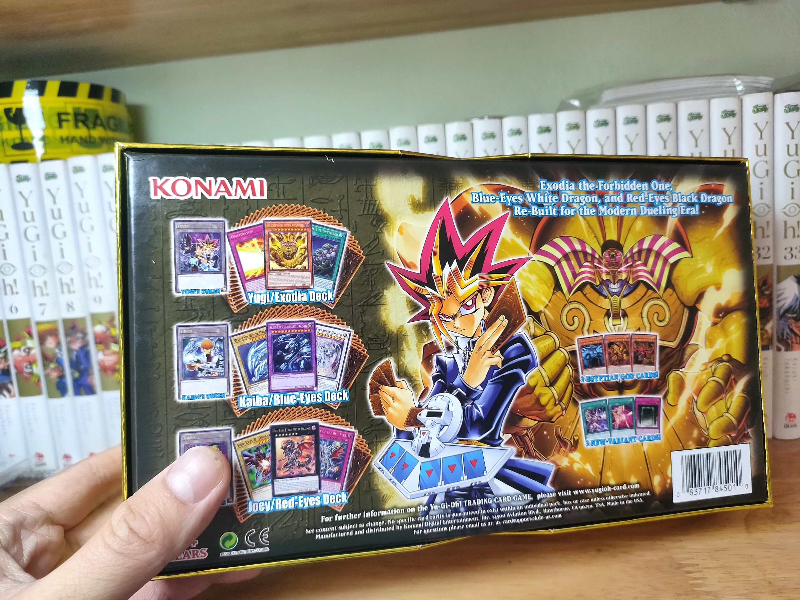 Hộp bài chứa tất cả những lá bài nổi tiếng được sử dụng bởi Yugi ,Kaiba và Jonouchi như :Thần sức mạnh bị xích Exodia, 3 thần Ai cập, Blue-eyes White Dragon (x3 ), Blue-eyes Ultimate Dragon, Dark magician, Red-eyes Black Dragon …..